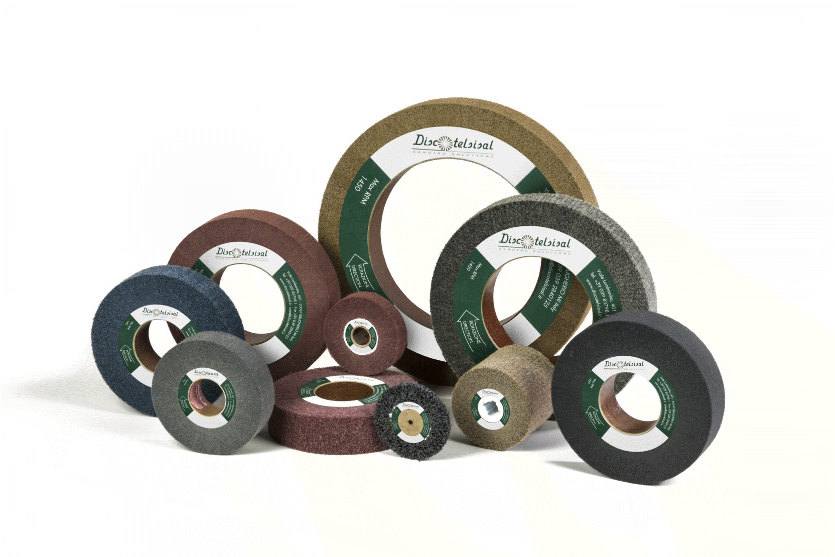 They can be used both on flat and shaped surfaces, adapting perfectly to the shape of the profile. The sanding units that mount these wheels are usually equipped with variable speed and selectable direction of rotation. The long rolls are used on machinery for the processing of coils or metal plates or in the processing of solid wood, chipboard or MDF panels.
