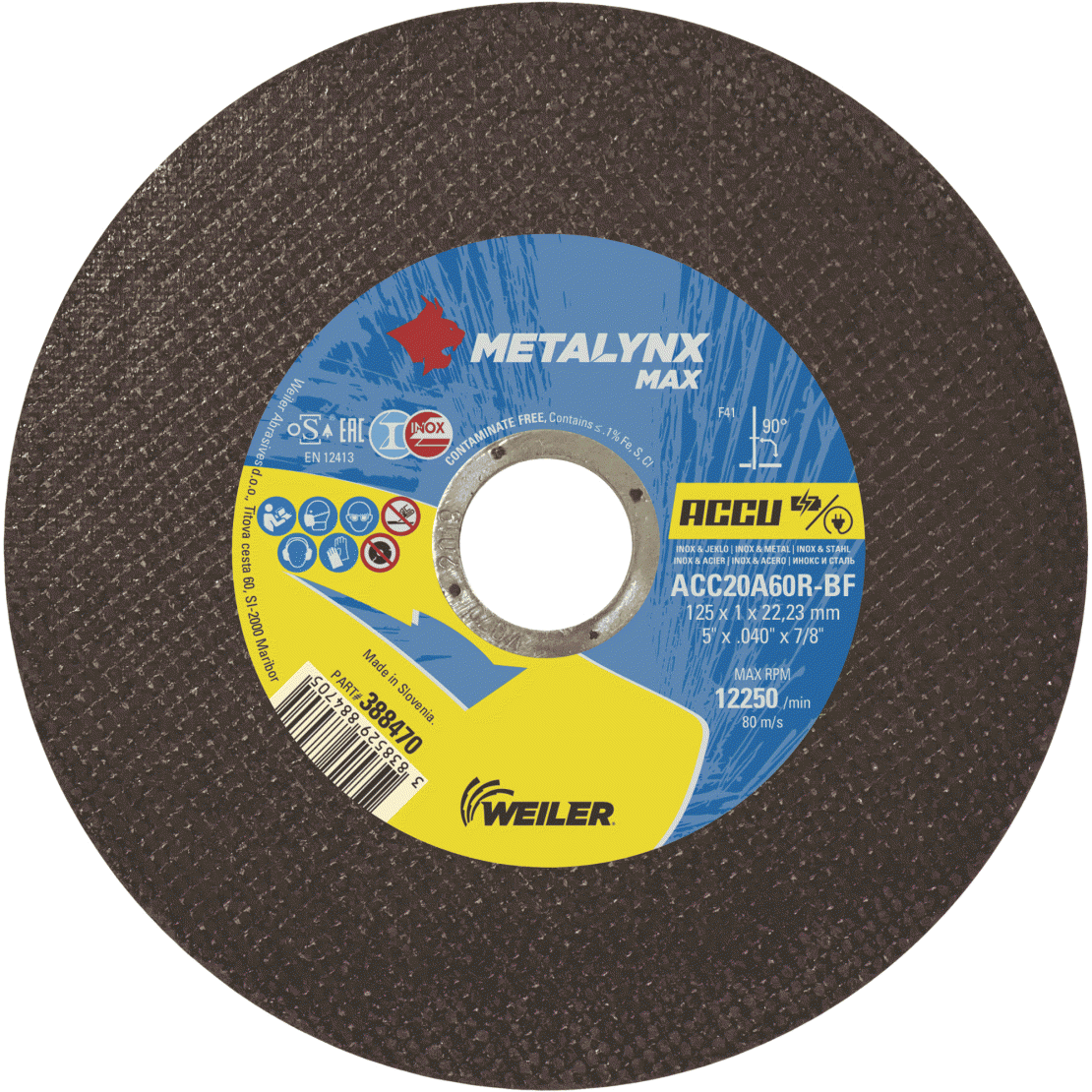Metalynx MAX ACCU wheels were designed to offer maximum performance when used on battery- or all types of electric grinders. These wheels enable fast straight cuts and are characterized by a significantly longer life than the competitors while saving energy of the machines and maintaining a long wheel life.