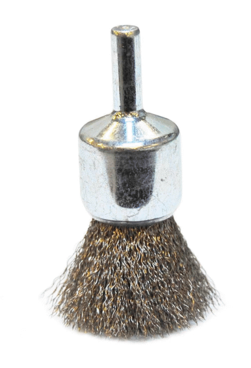 CRIMPED WIRE END BRUSHES - Feature a solid end construction and very flexible brushing action