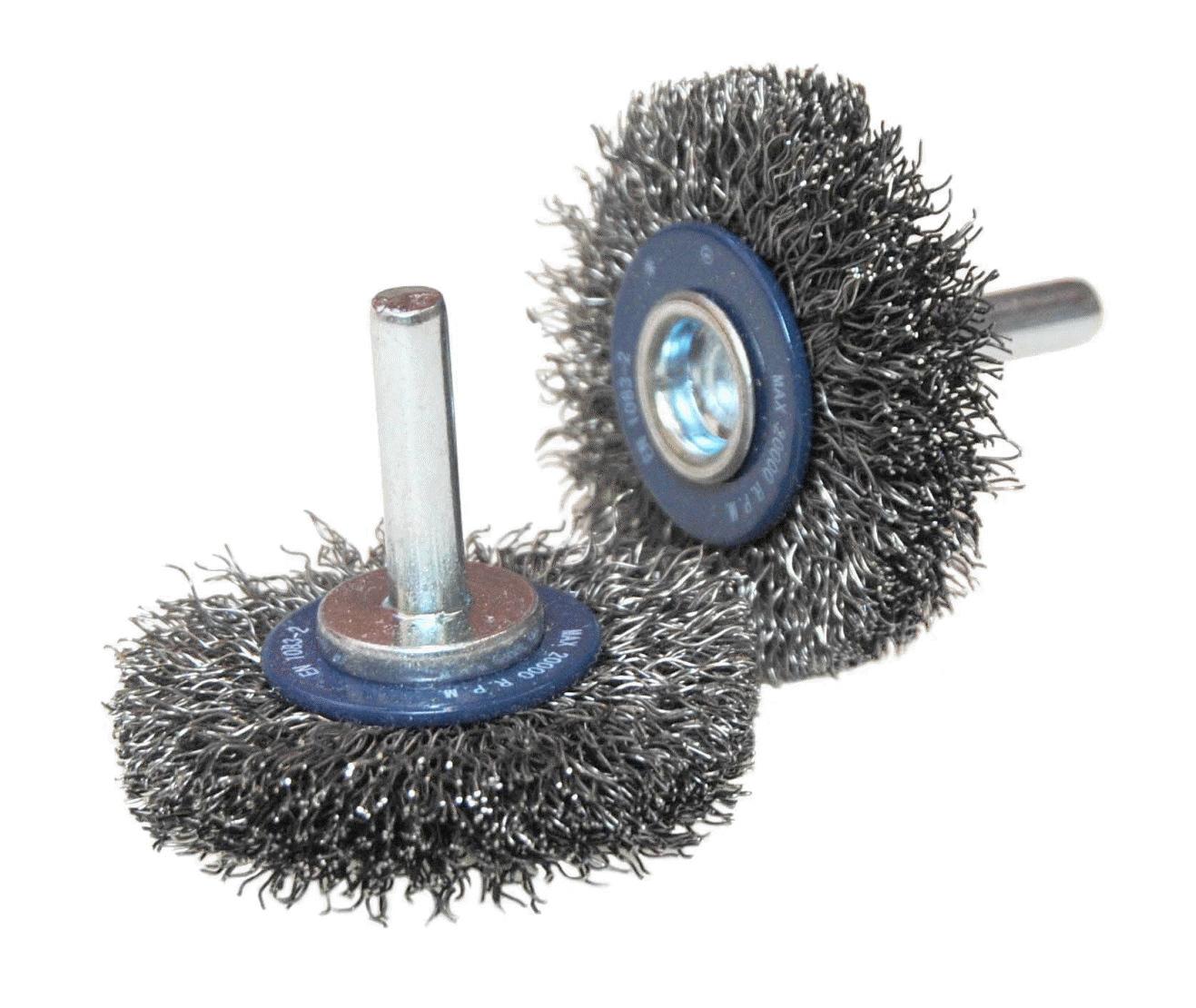 controlled brushing action in a stem-mounted crimped wire wheel.