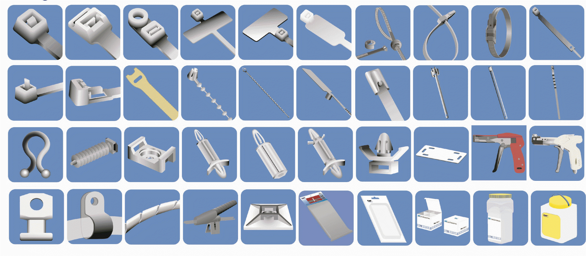 We offer a very wide range of cable ties in all sizes and colours. We continually extend and develop our product lines by working closely together with our customers from various industries. Complementing our existing range is an impeccable tailor-made manufacturing service that can meet with precision any specific requirements for any application.