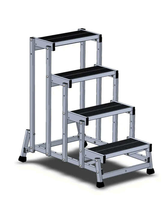 One- sided professional stool with 1 to 4 steps in extruded aluminium.