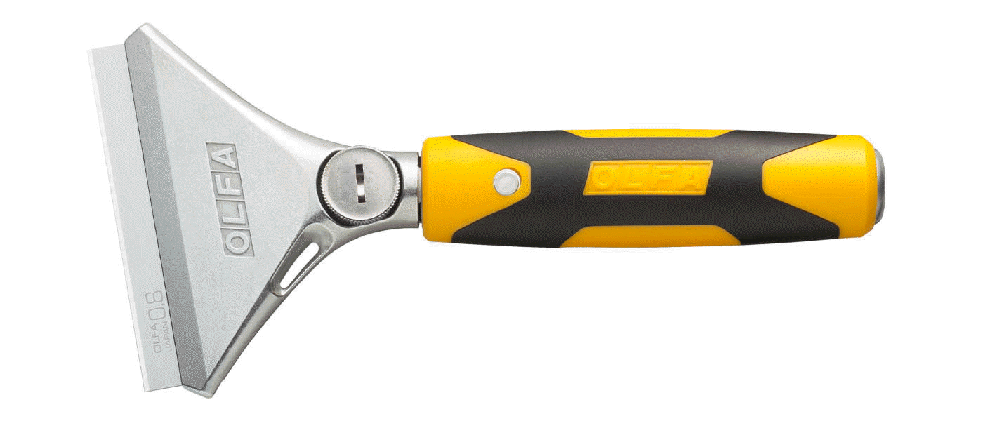 X-design 200MM-long professional heavy-duty scraper comes equipped with the 100MM-wide X 0.8MM-thick blade. No tools are required for blade replacement. The 0.5MM-thick BS, Flexible BSF and OLFA LB blade fit as well.