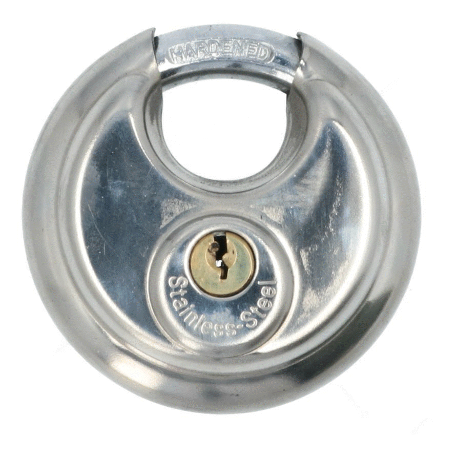 The stainless steel Carpoint padlock can be used as a padlock in combination with a chain. Also suitable for use as a lock for a hitch lock. The padlock has a diameter of 70 mm and is supplied with two keys.