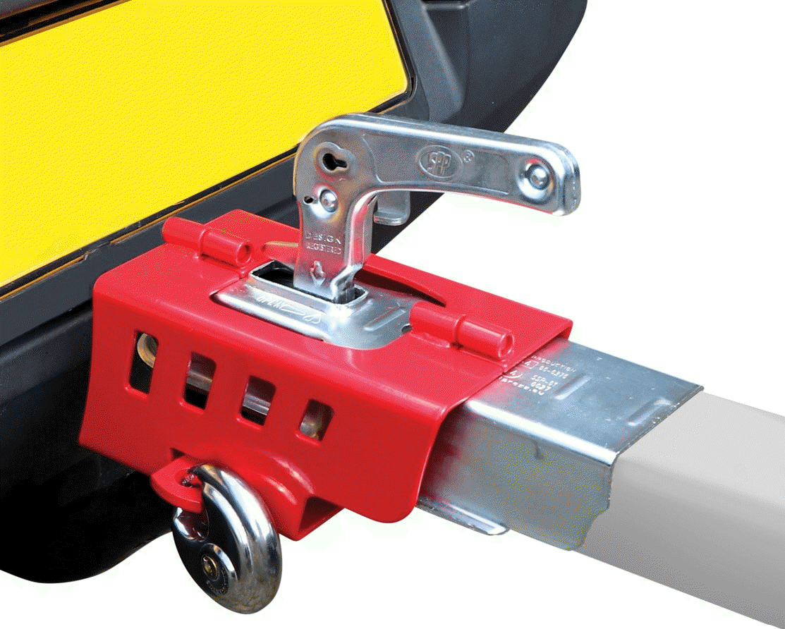 Foldable, can also be mounted on caravan/trailer when connected to the car. Complete with padlock.