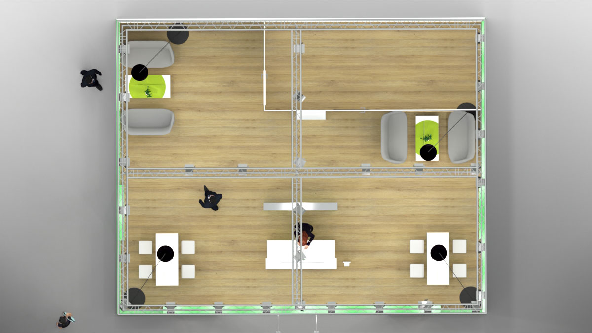 The prices always refer to a W8 x D7 = 56 sqm corner stand. Other stand sizes and shapes (terrace stand, two-corner stand, island stand) are modularly adaptable and can be individually calculated according to your briefing.
